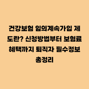 퇴직 후에도 건강보험 혜택을 그대로 유지할 수 있는 방법이 있습니다. 바로 '건강보험 임의계속가입 제도'인데요. 신청 방법부터 대상 조건, 보험료 혜택까지 한 번에 확인해보세요.