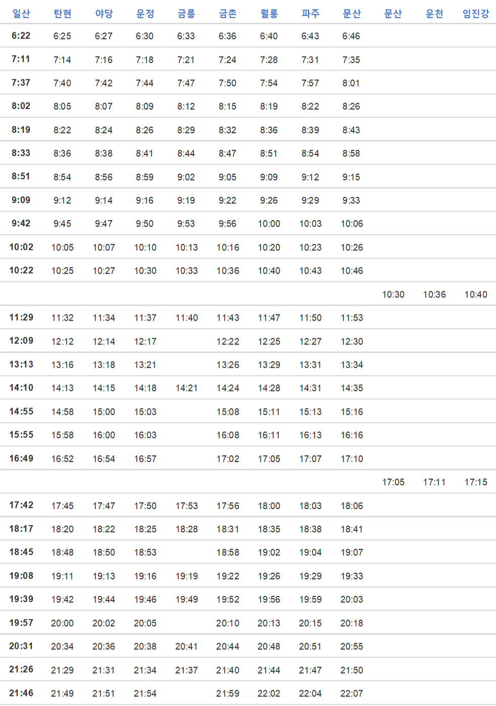 ■ 일산역 출발 탄현/문산행 열차 탑승 시간입니다.