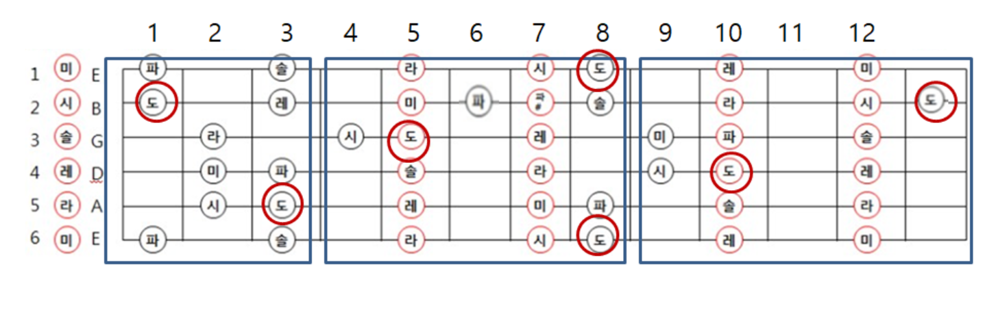 기타음(도레미파솔라시도)을 하나씩 연주하고 싶다면 위 사진을 참고하세요.