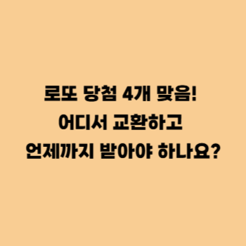 로또 번호 4개 맞았는데, 어디서 바꿔야 할지 모르겠다면? 헷갈릴 수 있지만, 로또 당첨금은 등수에 따라 지급처가 달라요. 특히 4등은 바로 교환 가능하지만, 몇 가지 조건이 있어요! 당첨금을 안전하게 수령하려면 아래 내용을 꼭 확인해보세요 💰
