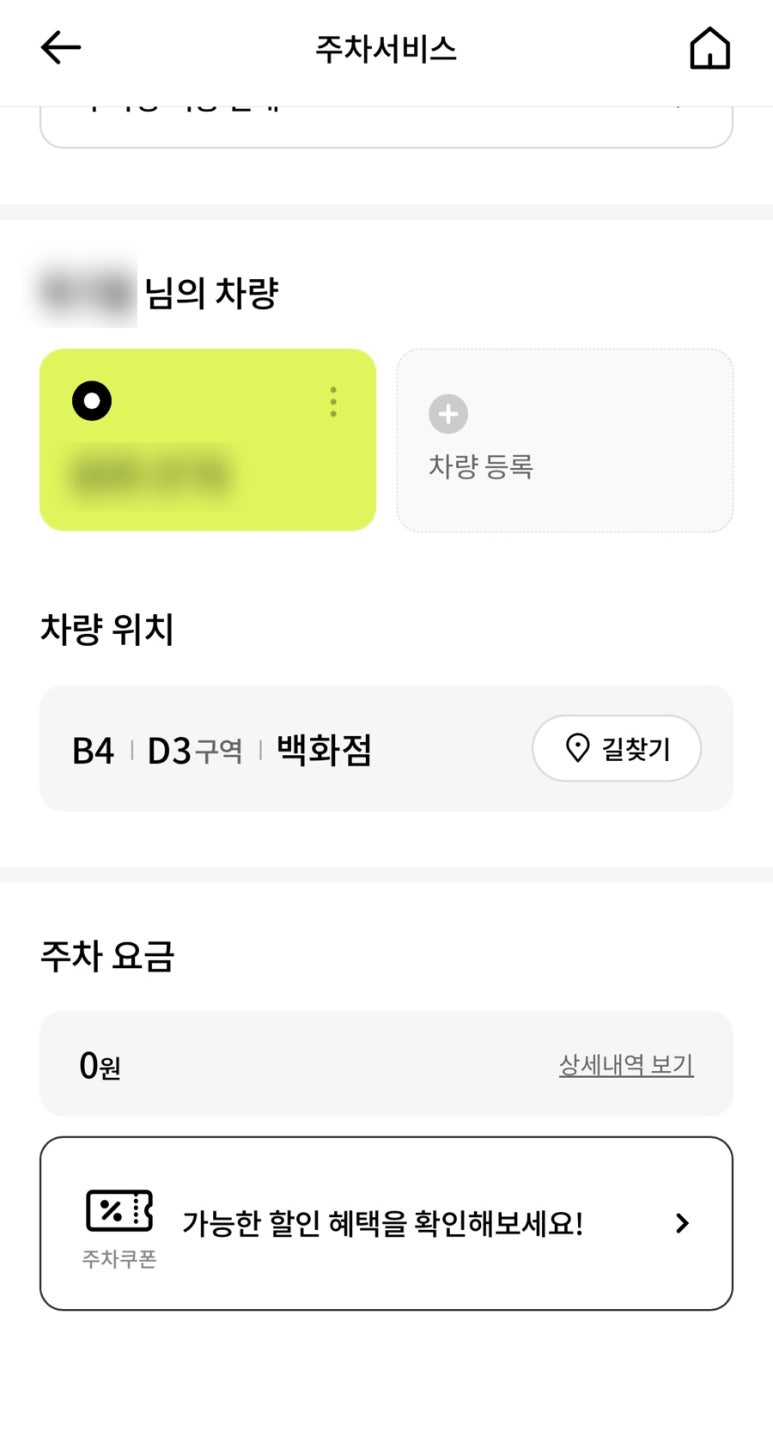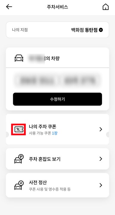 주차 쿠폰 확인 📱 → 매장별 주차 할인 정책을 미리 체크