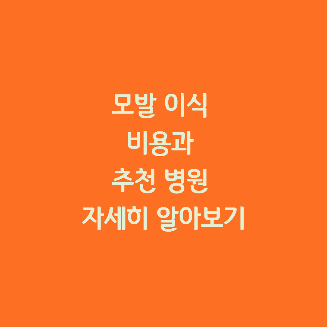 모발 이식 비용 알아보기 추천 병원