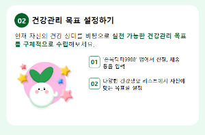 | 건강 목표 설정 | 개인 건강 목표 설정 및 실천 계획 수립 가능 |