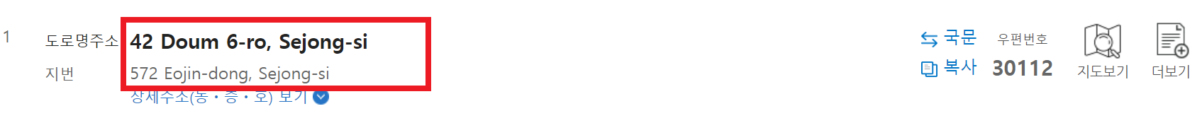 영문주소 : 42, Doum 6-ro, Sejong-si, Republic of Korea