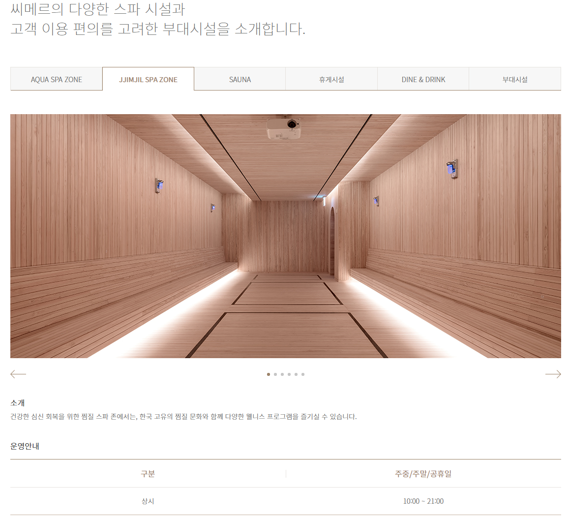 뷰가 좋기로 유명한 인피니티 풀을 비롯해 수영장, 스파, 찜질방, 워터 슬라이드, 사우나 등등 다양한 즐길거리가 있습니다. 제한시간 6시간도 모자르니 잘 계획하셔서 이용하면 좋겠습니다.