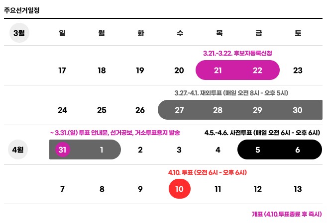 | 사전투표일 | 4월 5일, 6일, 06시부터 18시까지 |