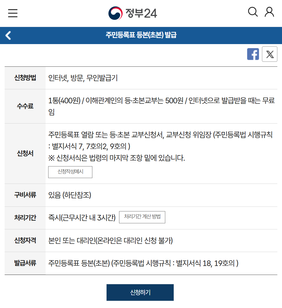 정부24 홈페이지에서 주민등록등본·초본을 발급받을 수 있습니다.