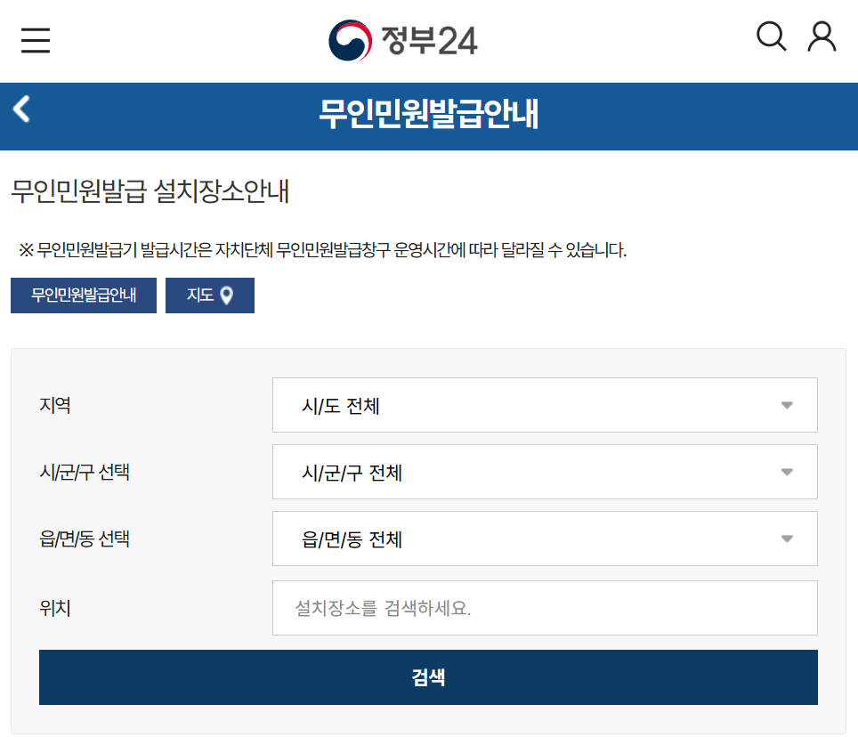 전국 주민센터 및 공공기관에 설치된 무인발급기에서도 발급 가능합니다.