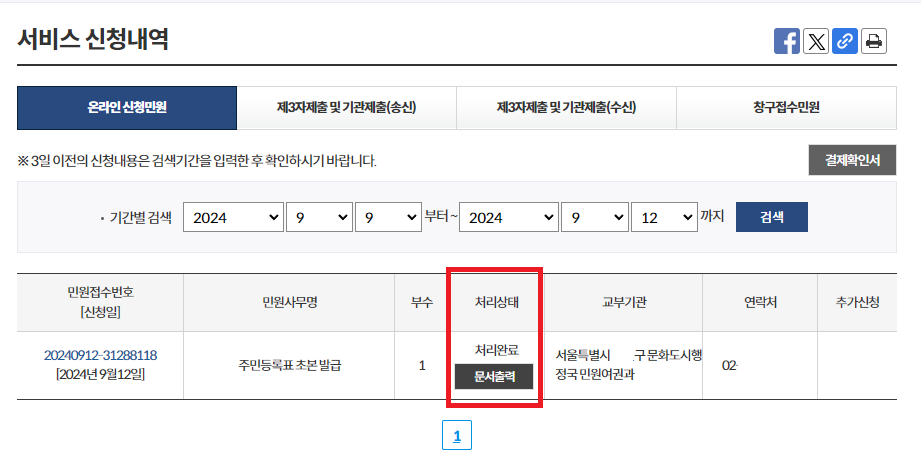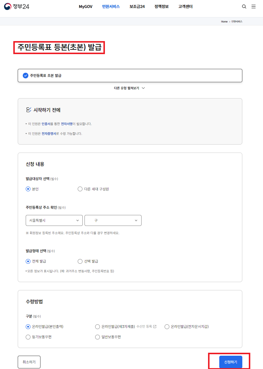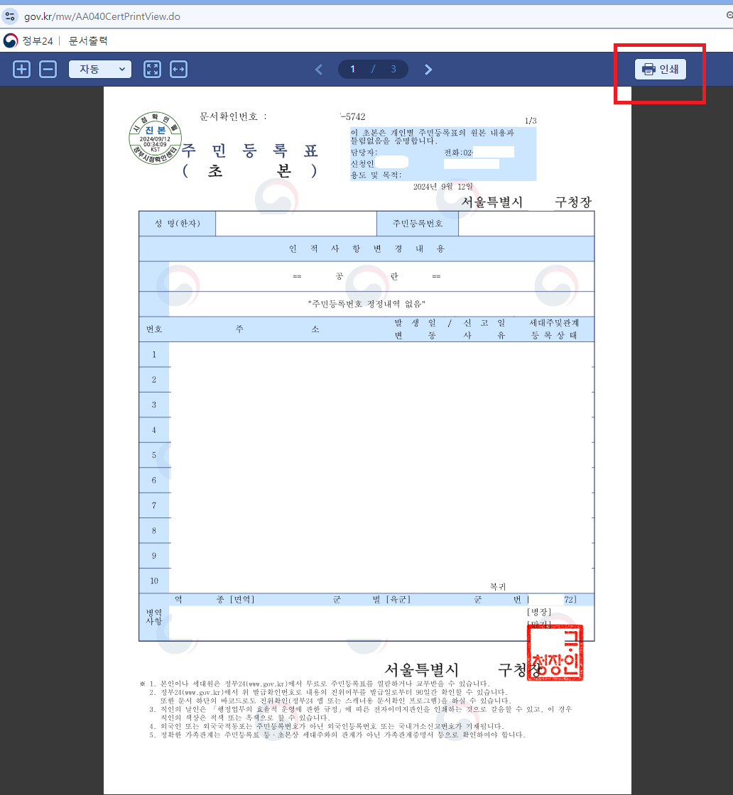 3) 주민등록초본 발급 신청