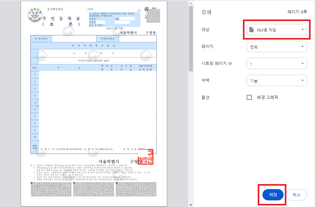 4. 주민등록초본 PDF 저장 방법