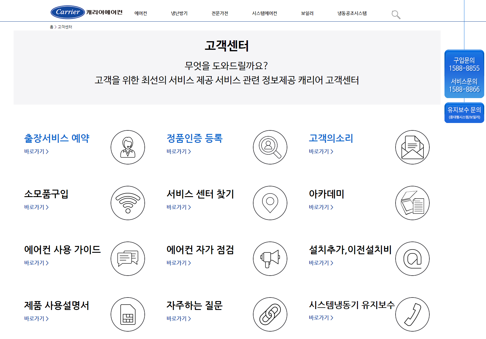 캐리어 에어컨 서비스 접수문의 번호