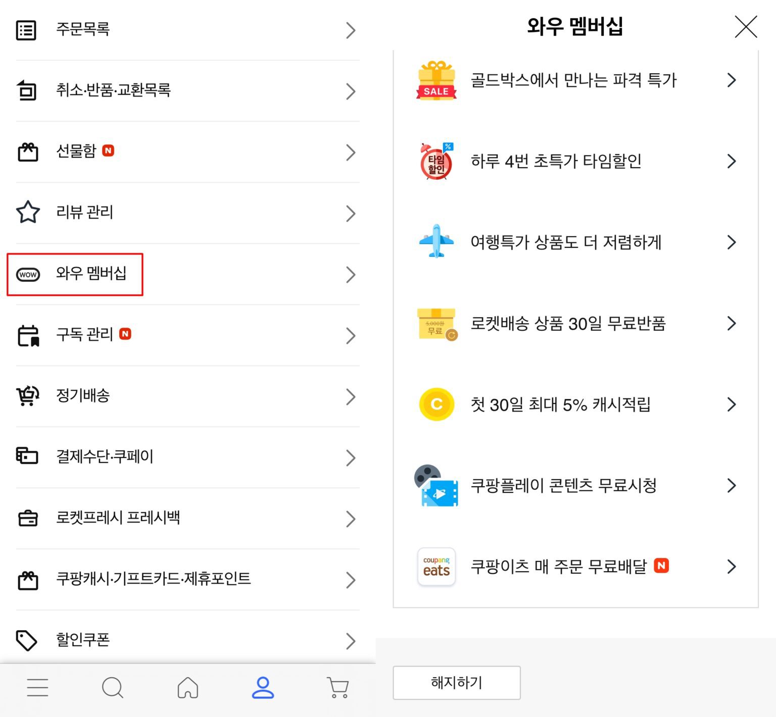 👉 쿠팡 로켓와우 해지 바로가기 😊