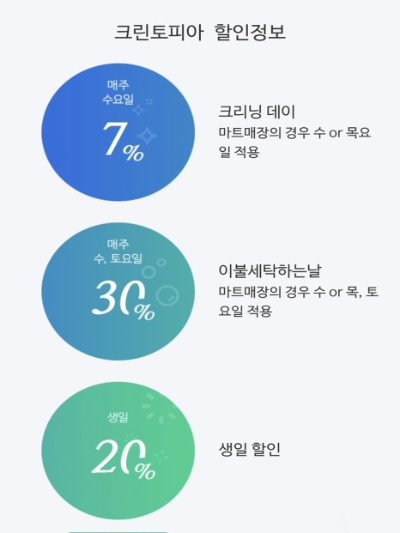 ※ 마트 내에 있는 크린토피아는 할인 적용요일이 다를 수 있으니 꼭 확인 바랍니다.