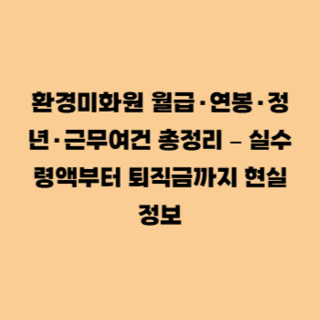 환경미화원 월급과 연봉, 근무여건과 정년이 실제로 어떤지 알고 계신가요? 겉보기엔 안정적이고 고수익 직업처럼 보이지만, 실제로는 조건과 경력이 큰 영향을 미칩니다. 지금 이 글에서 현실적인 모든 정보를 확인해보세요.